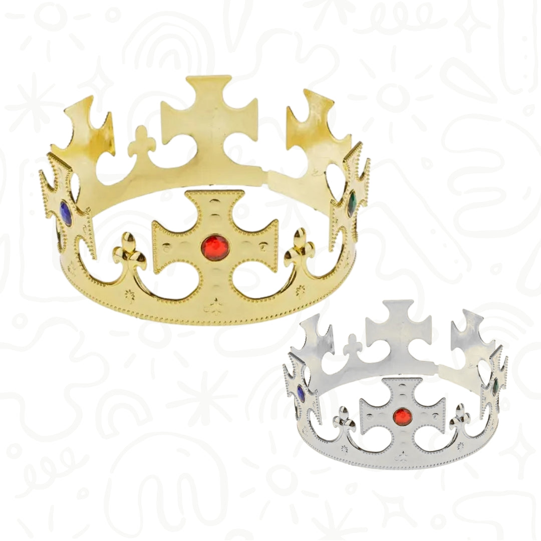Completa tu look de realeza con esta corona de rey disponible en color plata o dorado 👑✨. Su diseño elegante y brillante es perfecto para disfraces de reyes, príncipes o personajes medievales en fiestas, presentaciones escolares, obras de teatro y eventos temáticos. Ligera, cómoda y fácil de colocar, es el accesorio ideal para resaltar tu atuendo y darle un toque majestuoso en cualquier ocasión. 🎭🎉🌟